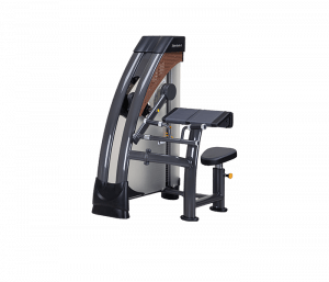 This product builds strength in the biceps. The exercise is performed from a sitting position. It involves extending and flexing the arm upwards at the elbow joint, using the handgrips on the two independent levers. Resistance is provided by a weight stack which enables the workload to be adjusted to suit each type of user.